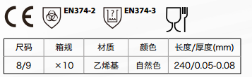 帶粉優質乙烯基一次性手套,無接縫處理,隔離液體零漏點處理,預涂玉米淀粉處理,穿戴更舒適、容易,可用于需頻繁更換手套的場合。左右手通用,完全貼合雙手。是接觸酸性、液態或含酒精食品的理想選擇,每盒100只。