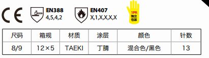 3/4丁腈涂層防切割手套,TAEKI防割纖維,優質丁腈浸膠四分之三掌面涂層,5級防割,耐熱接觸100℃。掌面粗糙造型,在油性環境擁有極佳防護性與抓握力,滿足油氣行業機械強度的要求。 適用于石化、天然氣和化工業。