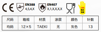 TAEKI纖維針織防切割套袖,拇指處留孔,長(zhǎng)45厘米,合理平和抗切割性能與靈巧性,有效保護(hù)整個(gè)手臂,左右手通用,短時(shí)耐熱接觸100°C。 單只出售,不分左右手。 適用于模具加工沖壓操作,裝配裝飾,食品包裝等行業(yè)。