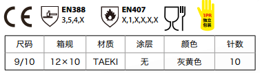 食品安全型防切割手套,TAEKI防割纖維,無涂層,通過食品安全認證,可接觸食品且耐100°C熱接觸,虎口處加強處理,佩戴舒適靈巧,TAEKI纖維有效透氣吸汗,保證手部的舒適手感。 適用于食品工程,生物工程和玻璃工業。
