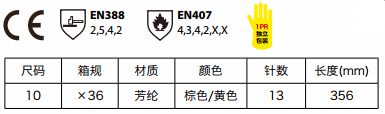 芳綸毛圈布高溫防切割手套,芳綸毛圈布環(huán)形織法,帶15厘米的抗熱牛皮袖口,羊毛襯里柔軟吸汗,短時(shí)有效耐熱接觸350-400℃/15秒,兼具極高的抗切割、撕裂、磨損力。