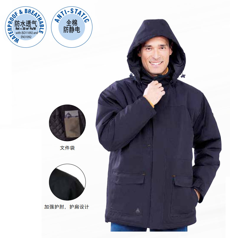 時尚款戶外防寒服,Oxford牛津布彈性纖維面料,防靜電,防水接縫,可脫卸兜帽,隱藏式拉鏈,防風前片門襟,肘肩部人性化加強,配備多個口袋,可調節收緊下擺,防寒性能更好, 穿著舒適透氣。 顏色:BL-藍色
