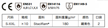 阻燃防靜電襯衫,55% Staciflam? FR聚丙烯腈纖維和42% 棉以及3% 防靜電碳纖維混合織造,隱藏式紐扣領,配兩個工具口袋,簡潔實用。主要用于高爆炸性,高可燃性等高危險環境,防止靜電釋放引發事故,也用于高敏感電子行業。