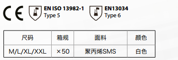 限次型無紡布透氣型連體服,彈性兜帽、袖口、腳踝口,防粉塵顆粒。100% SMS三層無紡布材質。 本產品可對輕度化學液體噴濺以及有毒干燥粉塵提供保護。適用于一般石棉控制場所、油漆噴涂作業、一般保潔、維修及維護作業等。 產品僅為連體服單獨包裝,不包含鞋套與手套,手套可與本目錄一次性手套配合選用。