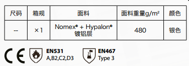 重型防火防化夾克/背帶褲,Nomex?材質(zhì) + CSM Hypalon?鍍鋁涂層,帶面部護(hù)沿的寬大兜帽,拉鏈外有沿邊保護(hù)。左邊有一個內(nèi)部口袋,背部及腋下通風(fēng),袖子底部有內(nèi)部保溫套,由粘扣扣牢。
