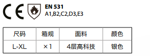 防金屬噴濺連體隔熱服,4層隔熱屏障,表面鍍鋁隔熱面料及特殊防金屬噴濺黏固涂層,有表面鍍鋁技術(shù),有效防止冷熱潮濕環(huán)境引起鋁層脫落。具有優(yōu)異的隔熱阻燃防護效果,以及較好的防熔融金屬飛濺效果。